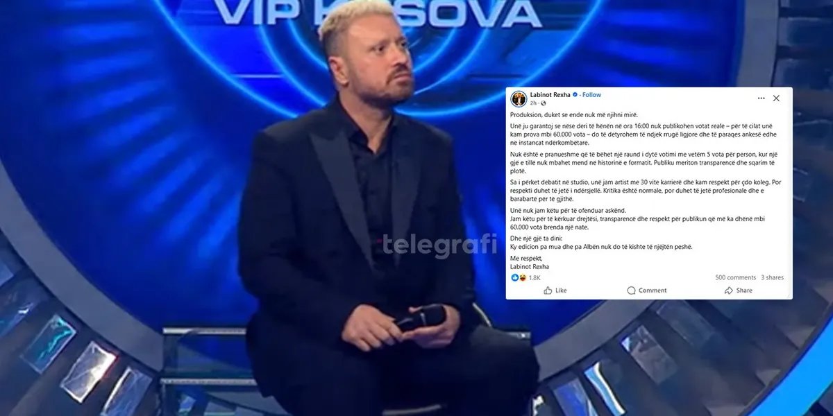 Pas eliminimit të tij të papritur nga formati i njohur, Labinot Rexha ka shprehur shqetësimin e tij për mënyrën se si u menaxhua televotimi, duke kërkuar transparencë dhe drejtësi nga produksioni.